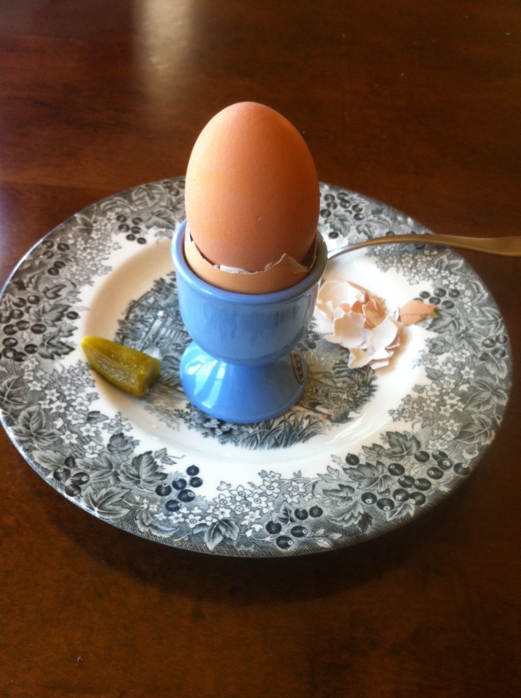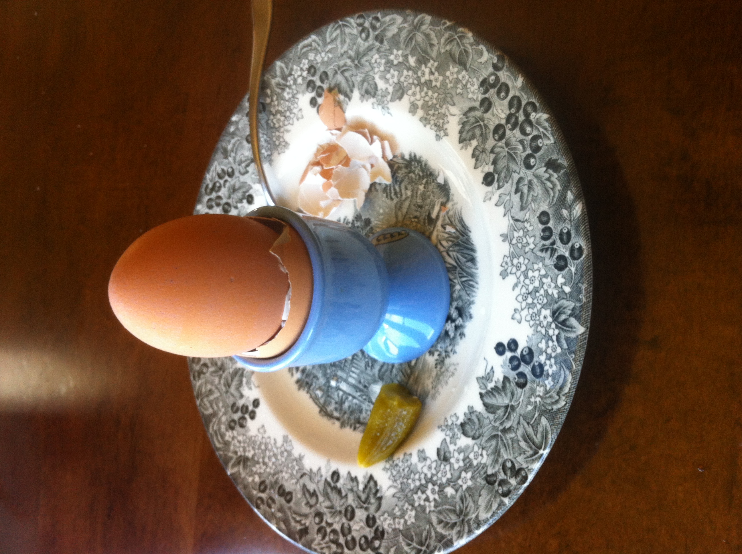After the eggs are cooked, I put them in a special egg-holder for large eggs. You may be surprised, but chicken continue producing eggs of different sizes, and if an egg is small, it slides down to the bottom of the egg holder screwing my entire breakfast experience. If this bothers you too, here’s the trick.