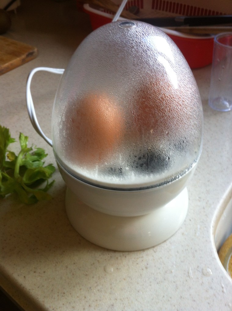 The first problem with this device is that it comes with a plastic measuring container, which used to have these special marks for the right amount of water depending on the number of eggs you want to boil. These marks disappeared over time and you can’t me sure if you’re gonna get the soft or hard boiled eggs.This egg machine has another annoying thing – you have to make a hole with a special needle in the raw eggs. But the grandma’s method always works fine. I just need to remember one number – 6 minutes regardless of the number of eggs you’re boiling. No holes, no nothing.