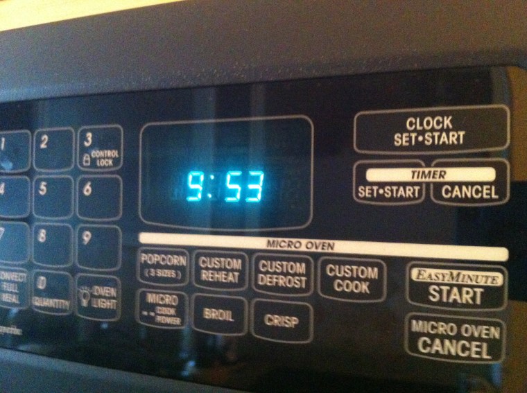 1. It’s about time microwave ovens and other appliances sync with an atomic clock via radio signal reception. There are plenty of $10 alarm clocks already doing this. Place one on top of your microwave.