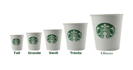 I’m not a Starbucks regular. I go there once in a while. Many years ago, when I went there for the first time and asked for a small cup of coffee, the girl behind the counter said, “So you want a tall coffee?”. Then she explained that tall was the smallest size they had. I’m sure some smart marketing person suggested that calling a cup “tall” is better than “small”. It makes a customer appreciate the value of the purchased product. It’s better to buy something tall than something small for the same amount of money. Devaluation of sizes in action.