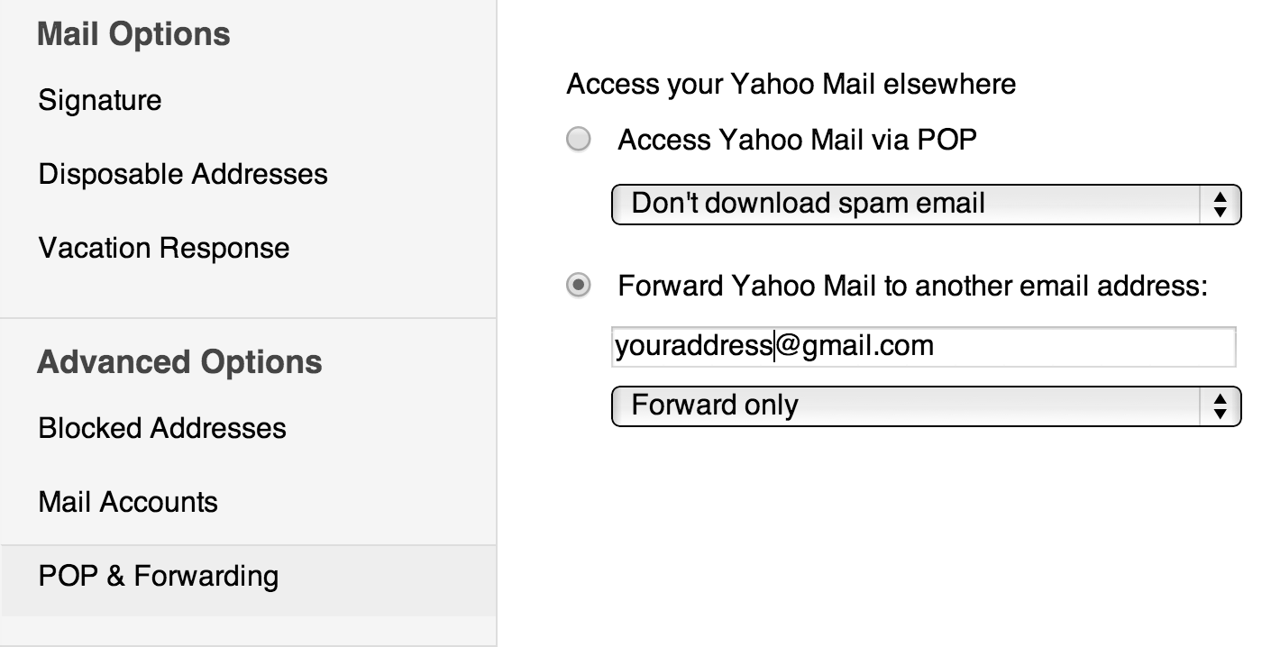 I did’t want to close my Yahoo! mail account because lots of people have it in their Contacts. Finally they got me today. After complaining about it to my younger son, he just asked, why won’t you just forward all of Yahoo! emails to your Gmail account? And why wouldn’t I?